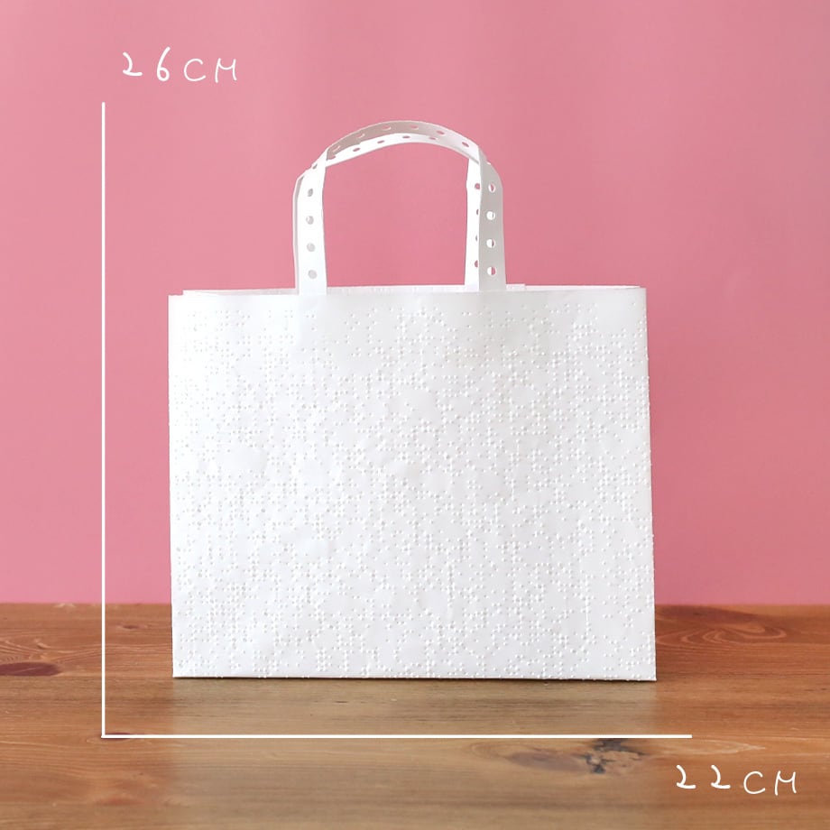 ・一部の商品では、点字バッグをギフトバッグとしてオプション(有料)追加することができます。対応可能な商品については、各商品ページをご確認ください。