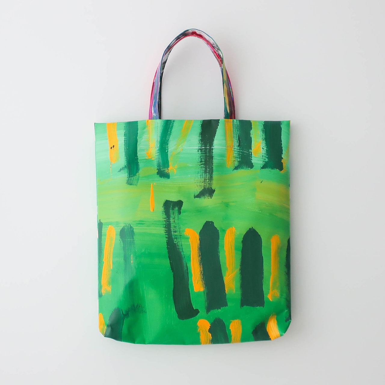 テントの商品をつくり始めた頃、仲間(利用者さん)によるペインティングの仕事を水曜日に行っていたため「水ようびのトート」。(今は月曜日と水曜日に行っています)