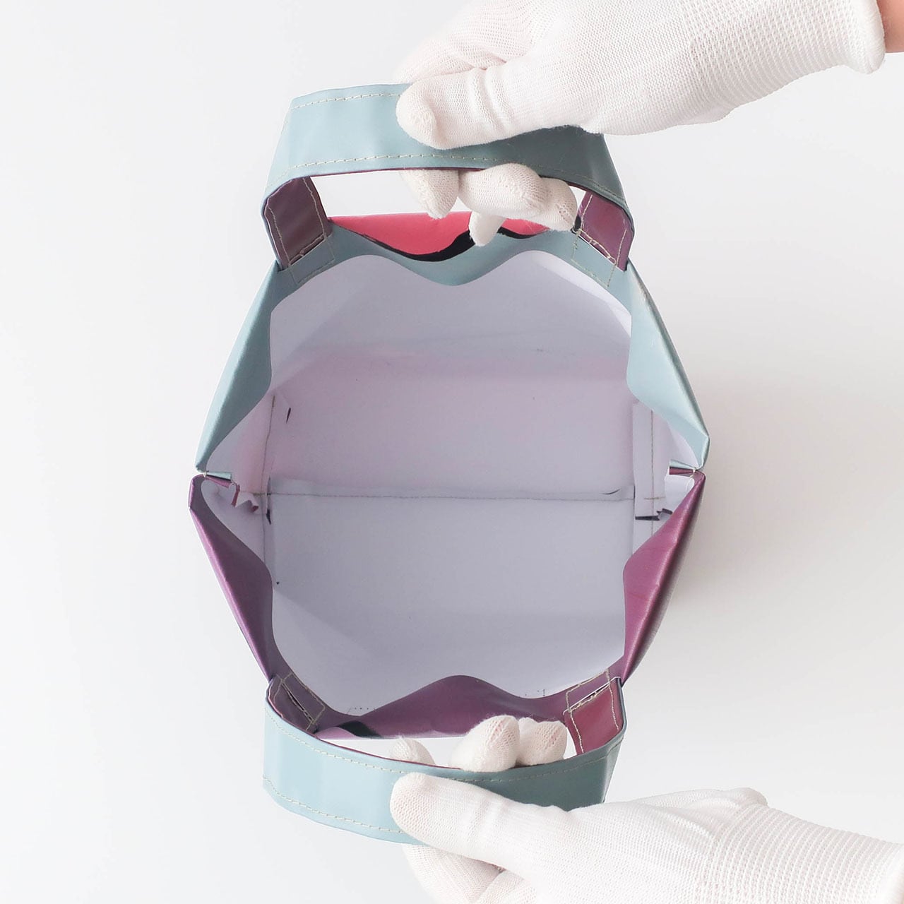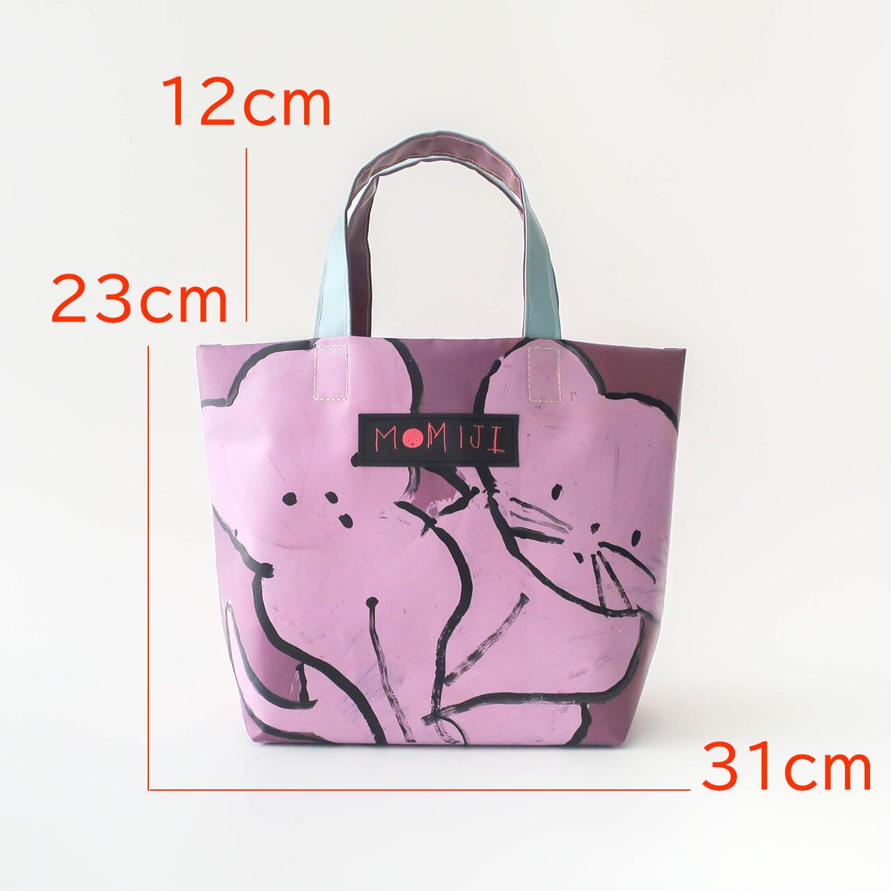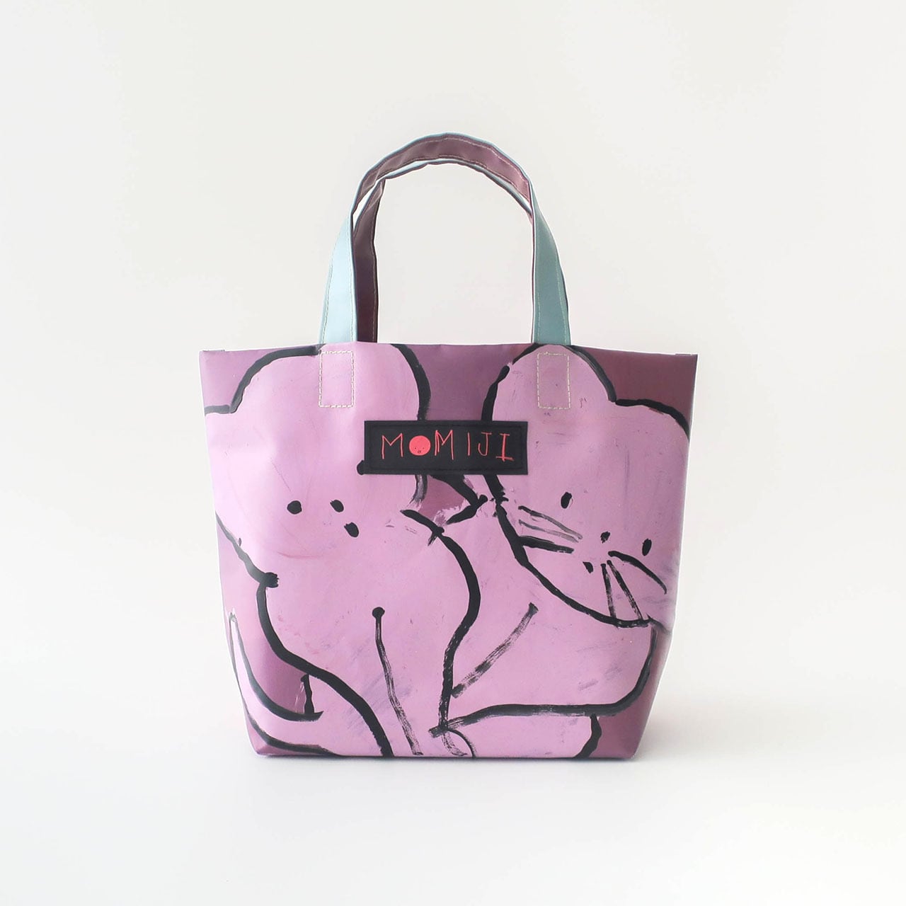 元もみじ作業所のお仲間の「きょうこさん」が製作されていたことから、このお名前がついたきょこちゃんバック。財布、ハンカチ、水筒、ポーチなど、細々したあれやこれをコンパクトにまとめたい方におすすめです!雨の日・雪の日もターポリン生地ならへっちゃら♪コーディネートを華やかに、楽しく、彩ってくれるアイテムです。
