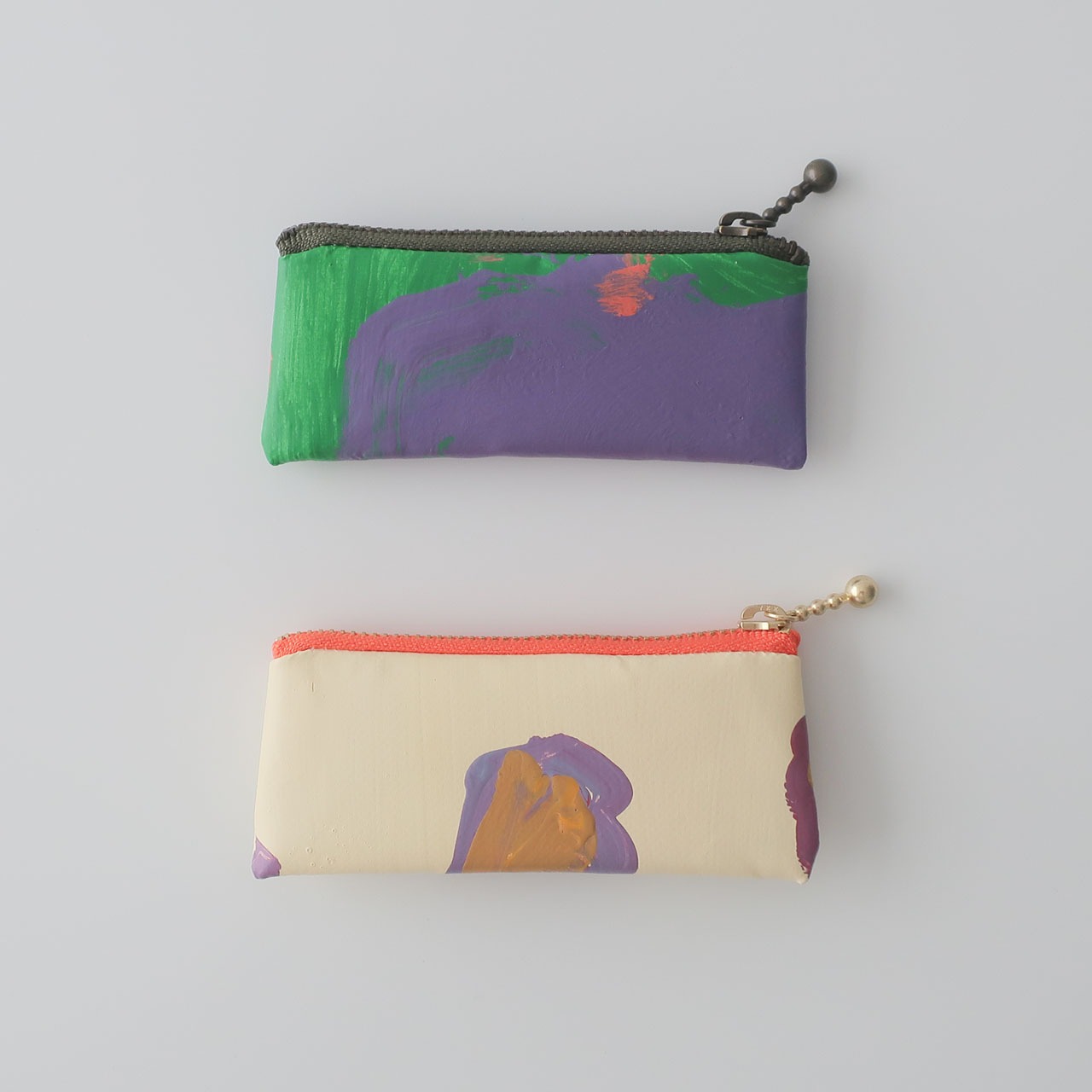 もみじ作業所の一つのグループの活動から生まれた廃材のテント生地を利用したテント商品。時にただ塗っているだけにも見える色合いにも、彼らそれぞれの思いや屈託が表現されたものに感じられるから不思議。そうやって描き、塗られた二つとないテント生地は職員さんの手で裁断し、一部を除いて職員さんが縫製し、カバンやポーチなどカラフルで独特なテント商品へと生まれ変わります。