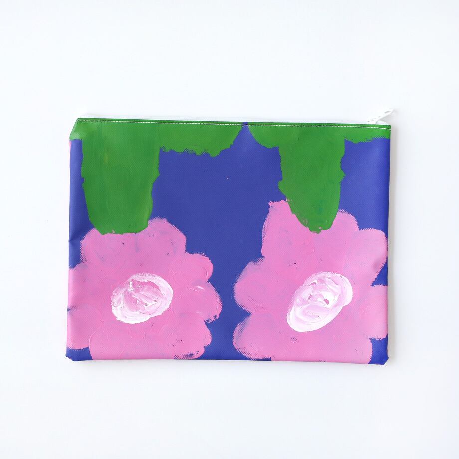 もみじ作業所の一つのグループの活動から生まれた廃材のテント生地を利用したテント商品。時にただ塗っているだけにも見える色合いにも、彼らそれぞれの思いや屈託が表現されたものに感じられるから不思議。そうやって描き、塗られた二つとないテント生地は職員の手で裁断し、一部を除いて職員が縫製し、カバンやポーチなどカラフルで独特なテント商品へと生まれ変わります。