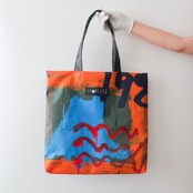 テントの商品をつくり始めた頃、仲間(利用者さん)によるペインティングの仕事を水曜日に行っていたため「水ようびのトート」。(今は月曜日と水曜日に行っています)