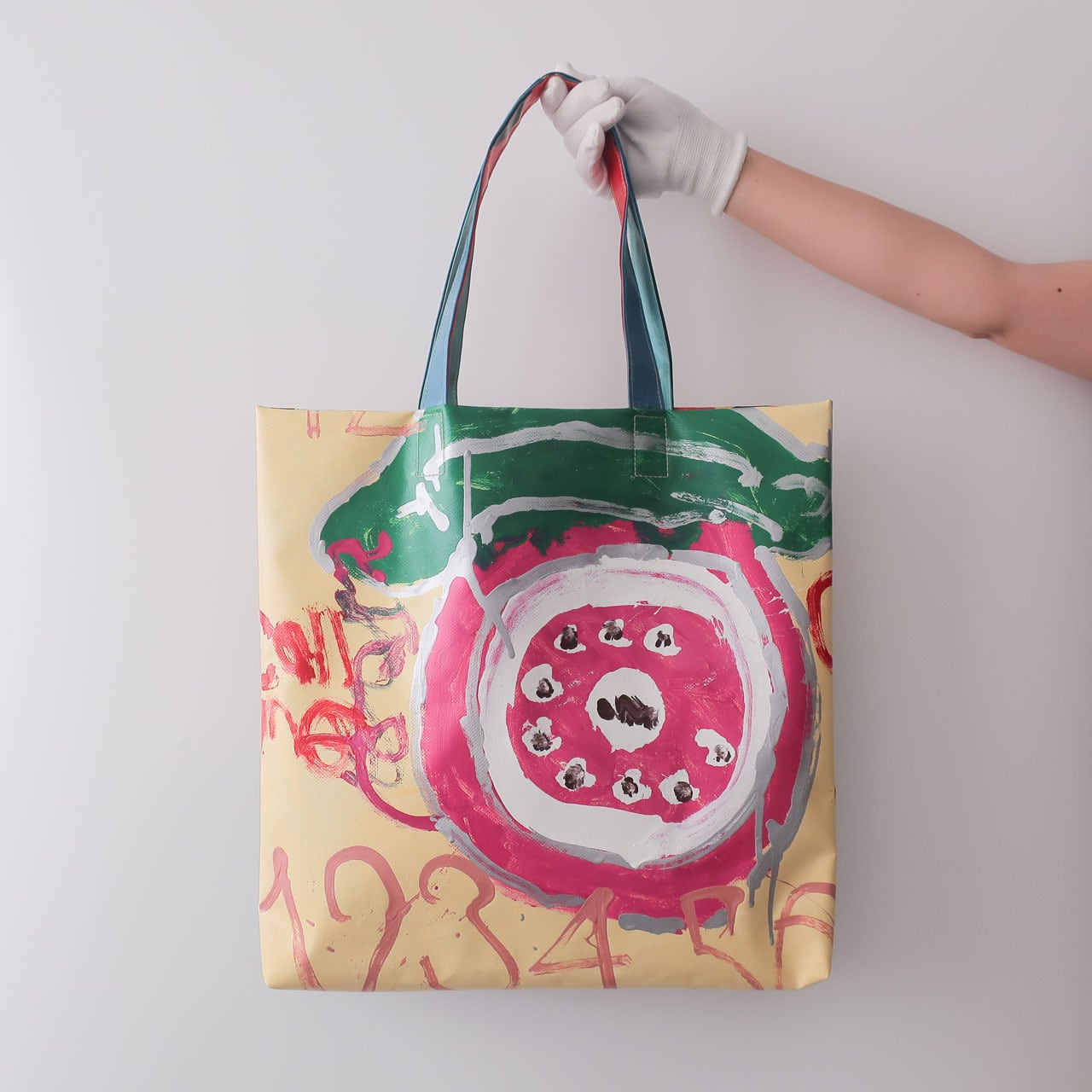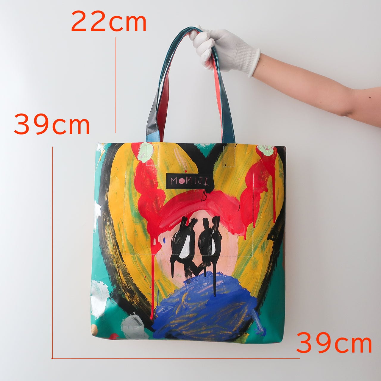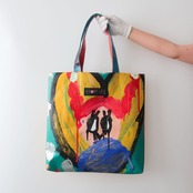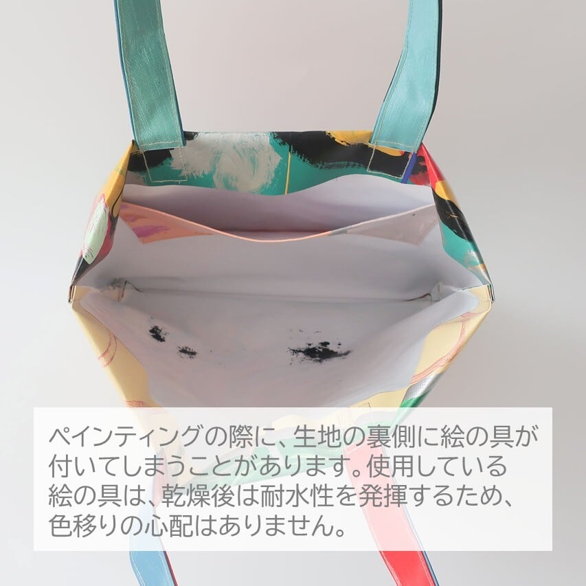 テントの商品をつくり始めた頃、仲間(利用者さん)によるペインティングの仕事を水曜日に行っていたため「水ようびのトート」。(今は月曜日と水曜日に行っています)