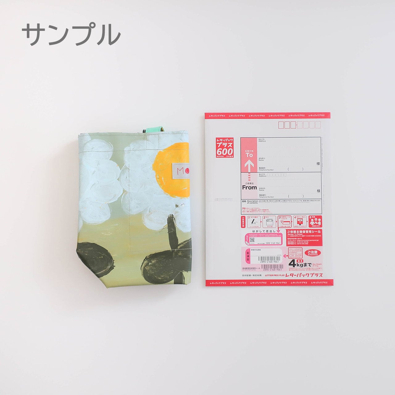 単品でのご注文の場合、レターパックプラスに入れて郵送致します。2回ほど折っての郵送となりますので、お手元に届き次第、早めの開封をおすすめいたします。ターポリン生地はすごく丈夫なため、しっかり広げてお使いいただくとヨレ等気にならないかと思いますが、ご心配な方は、ご注文時に備考欄にてお知らせください。送料が少し高くなりますが、宅急便コンパクト等、レターパックプラスより商品が窮屈ではなく、ゆったりとした梱包でお送りいたします。