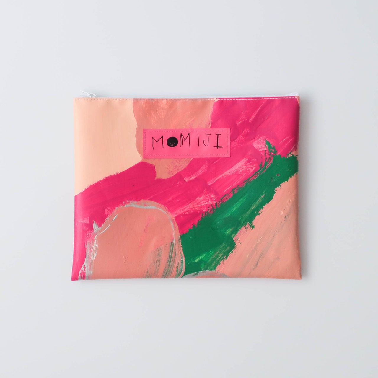 もみじ作業所の一つのグループの活動から生まれた廃材のテント生地を利用したテント商品。時にただ塗っているだけにも見える色合いにも、彼らそれぞれの思いや屈託が表現されたものに感じられるから不思議。そうやって描き、塗られた二つとないテント生地は職員の手で裁断し、一部を除いて職員が縫製し、カバンやポーチなどカラフルで独特なテント商品へと生まれ変わります。