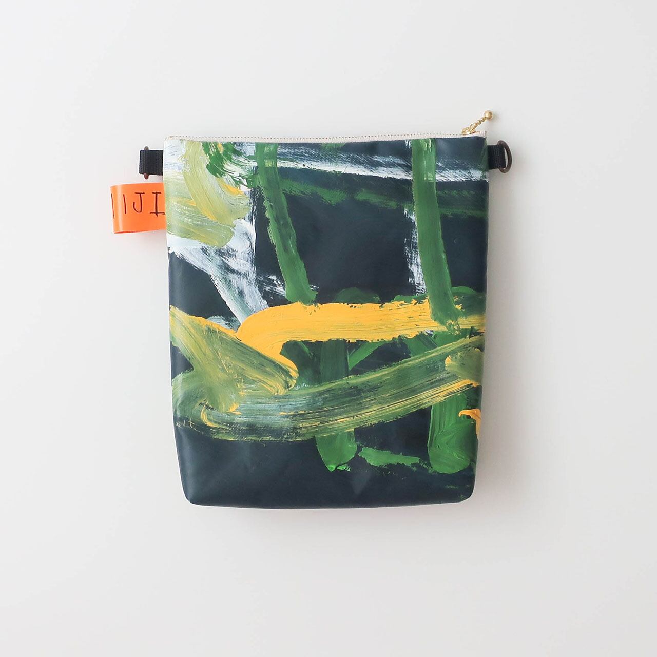 もみじ作業所の一つのグループの活動から生まれた廃材のテント生地を利用したテント商品。時にただ塗っているだけにも見える色合いにも、彼らそれぞれの思いや屈託が表現されたものに感じられるから不思議。そうやって描き、塗られた二つとないテント生地は職員の手で裁断し、一部を除いて職員が縫製し、カバンやポーチなどカラフルで独特なテント商品へと生まれ変わります。