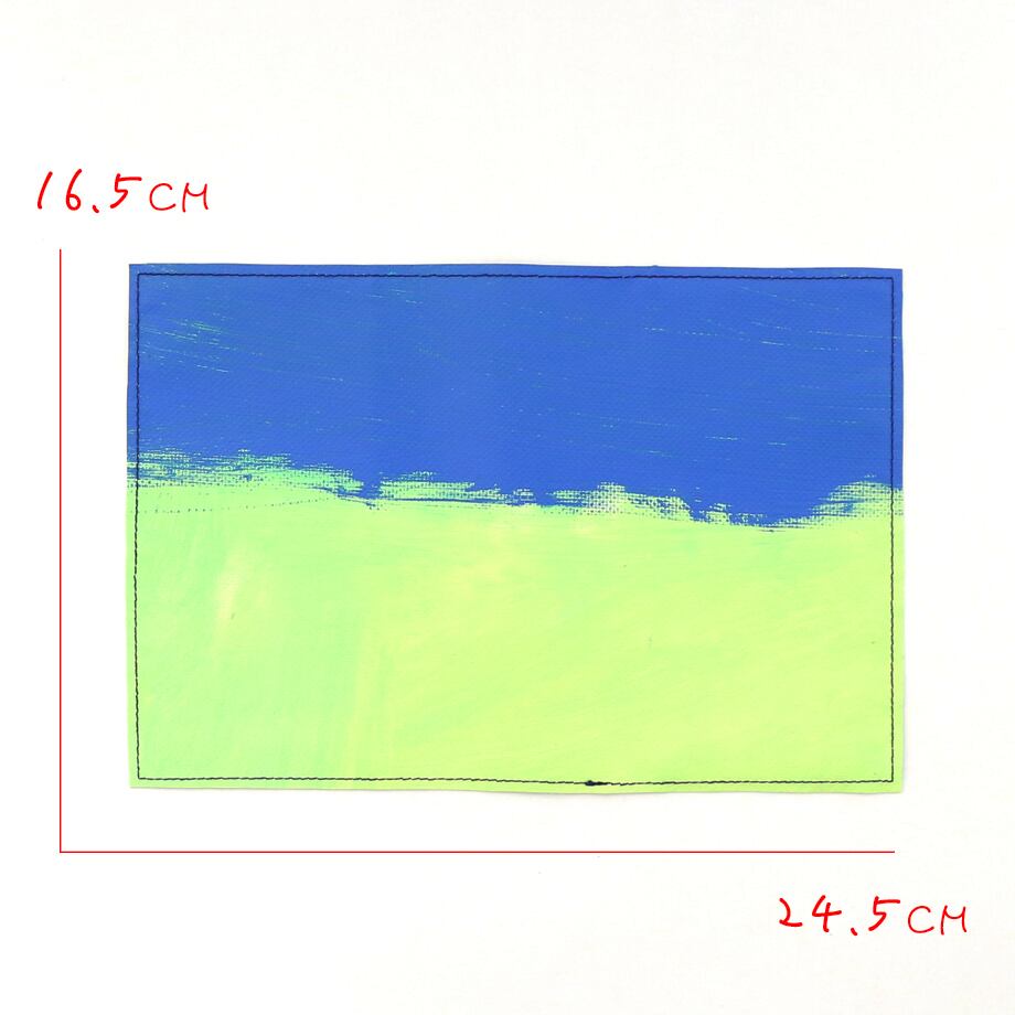 もみじ作業所の一つのグループの活動から生まれた廃材のテント生地を利用したテント商品。時にただ塗っているだけにも見える色合いにも、彼らそれぞれの思いや屈託が表現されたものに感じられるから不思議。そうやって描き、塗られた二つとないテント生地は職員の手で裁断し、一部を除いて職員が縫製し、カバンやポーチなどカラフルで独特なテント商品へと生まれ変わります。
