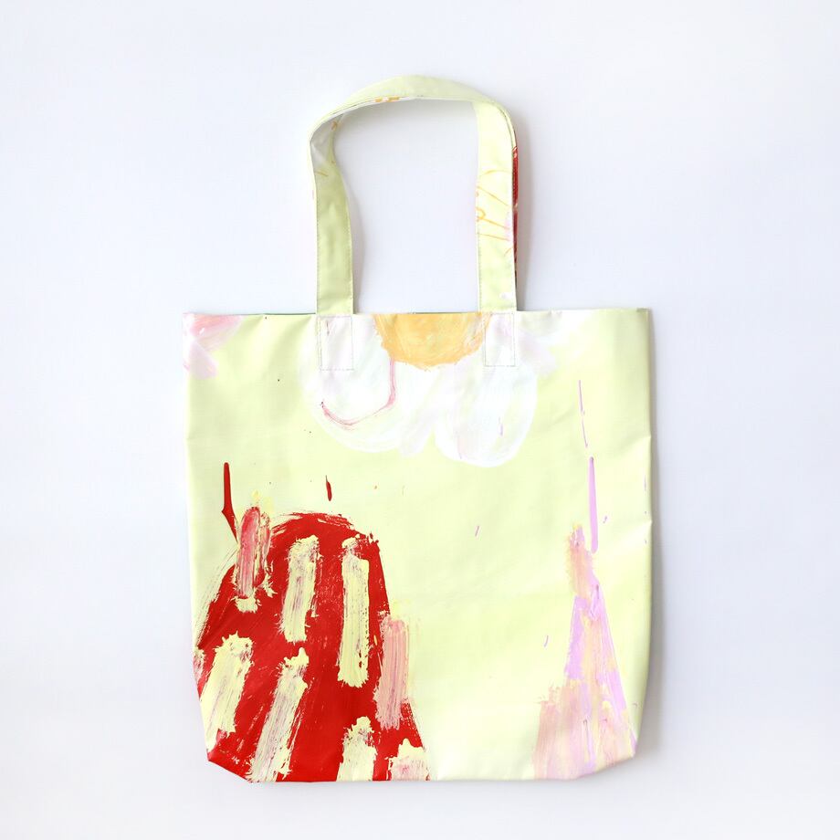 テントの商品をつくり始めた頃、仲間(利用者さん)によるペインティングの仕事を水曜日に行っていたため「水ようびのトート」。(今は月曜日と水曜日に行っています)