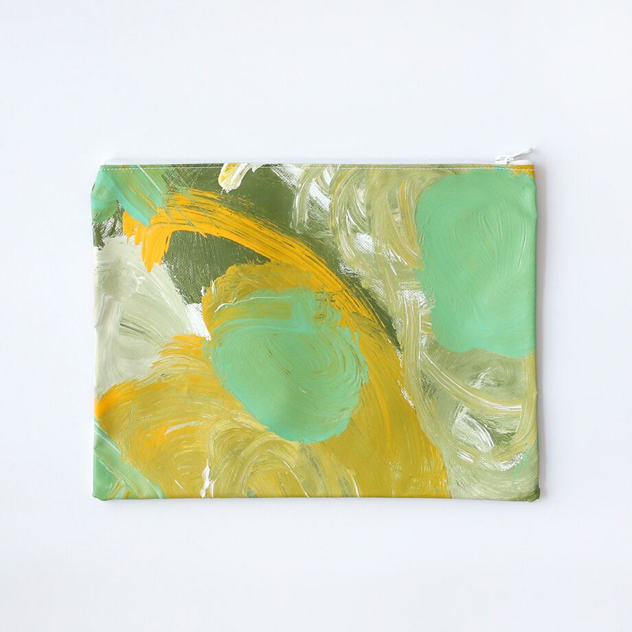 もみじ作業所の一つのグループの活動から生まれた廃材のテント生地を利用したテント商品。時にただ塗っているだけにも見える色合いにも、彼らそれぞれの思いや屈託が表現されたものに感じられるから不思議。そうやって描き、塗られた二つとないテント生地は職員の手で裁断し、一部を除いて職員が縫製し、カバンやポーチなどカラフルで独特なテント商品へと生まれ変わります。