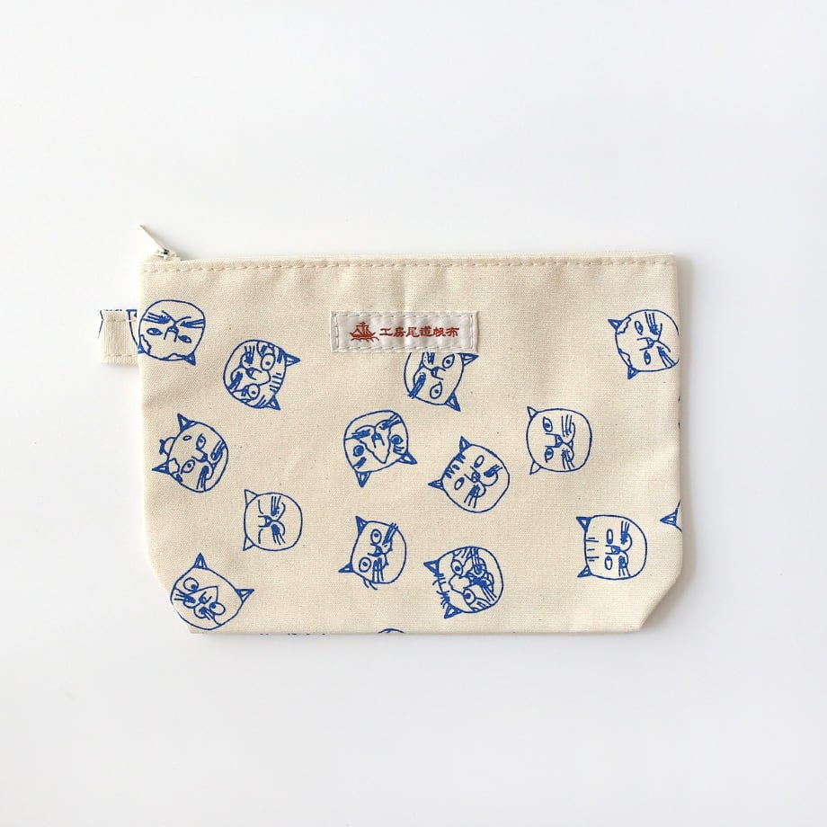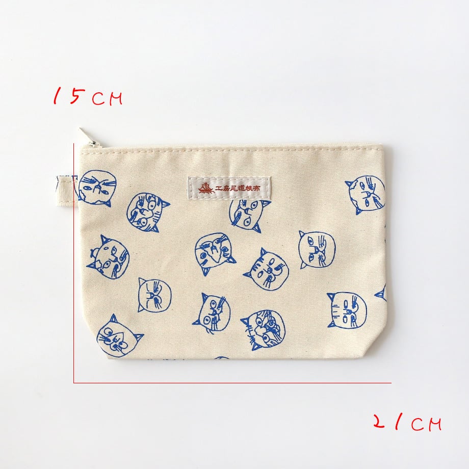 丈夫でシンプルな平織の帆布に、ぽんぽんの人気アーティスト上村福銖(うえむら ふくしゅ)さんが描くネコがプリントされたポーチです。同じ柄で、トートバッグもございます。