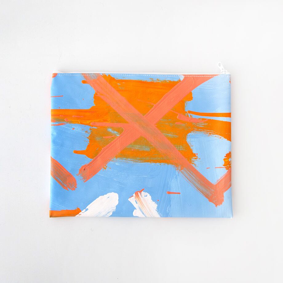 もみじ作業所の一つのグループの活動から生まれた廃材のテント生地を利用したテント商品。時にただ塗っているだけにも見える色合いにも、彼らそれぞれの思いや屈託が表現されたものに感じられるから不思議。そうやって描き、塗られた二つとないテント生地は職員の手で裁断し、一部を除いて職員が縫製し、カバンやポーチなどカラフルで独特なテント商品へと生まれ変わります。