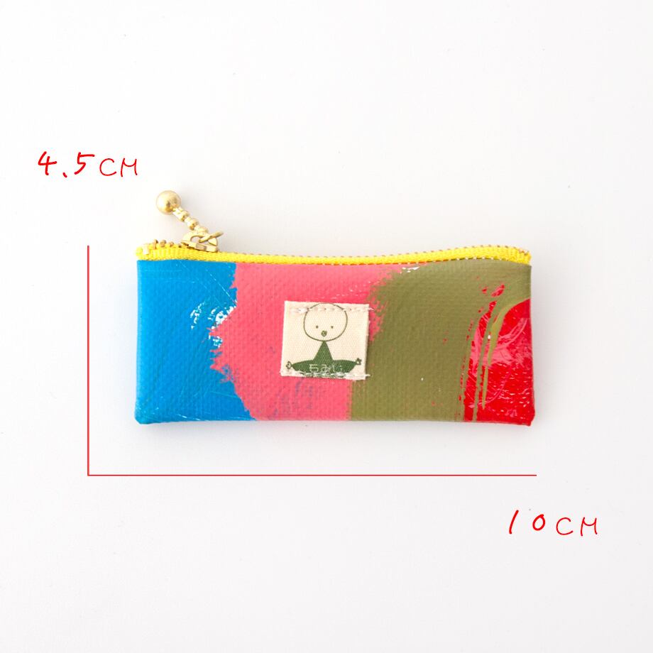 もみじ作業所の一つのグループの活動から生まれた廃材のテント生地を利用したテント商品。時にただ塗っているだけにも見える色合いにも、彼らそれぞれの思いや屈託が表現されたものに感じられるから不思議。そうやって描き、塗られた二つとないテント生地は職員さんの手で裁断し、一部を除いて職員さんが縫製し、カバンやポーチなどカラフルで独特なテント商品へと生まれ変わります。