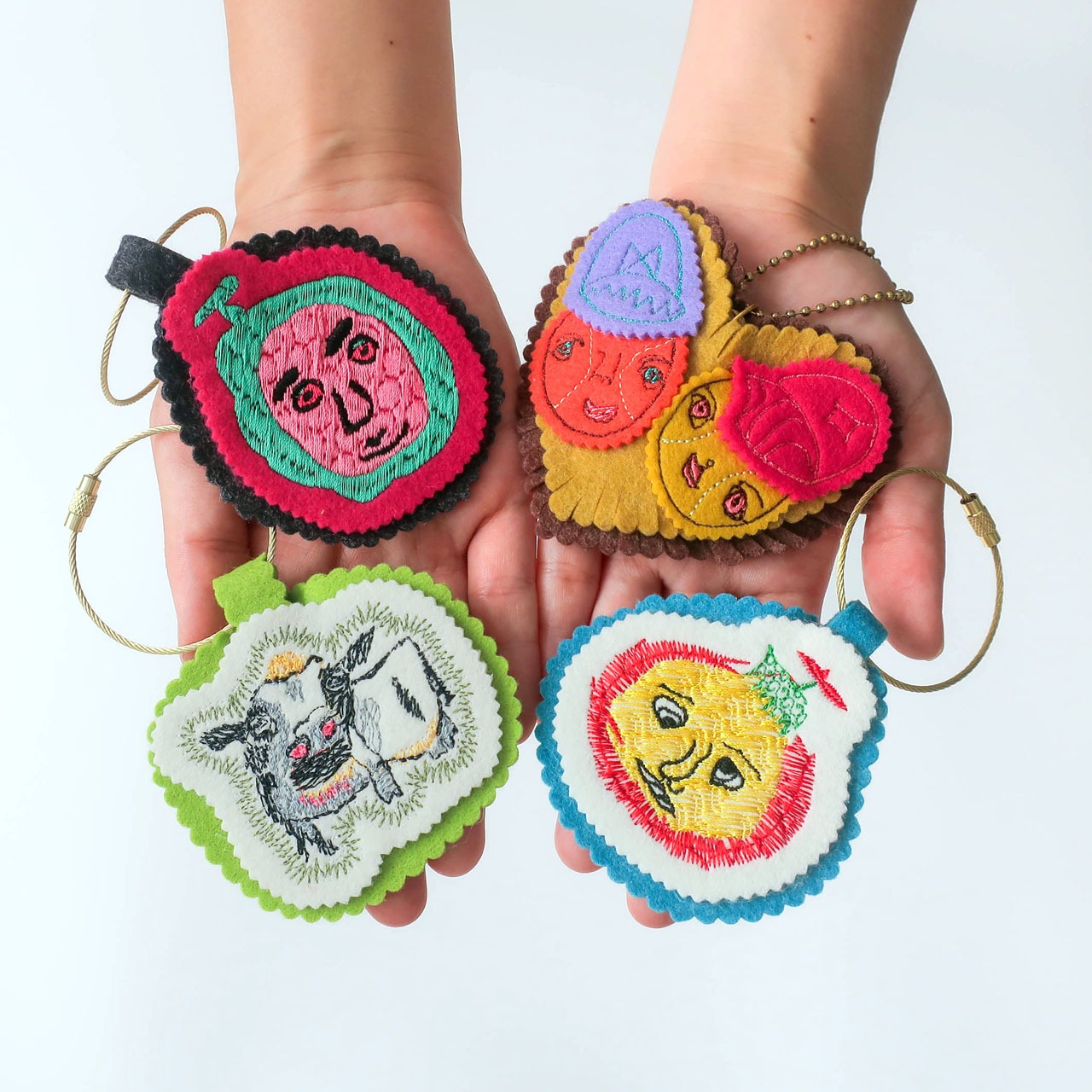 藤原勝則さんの作品が、フェルト生地の上にデジタル刺繍で再現され、バッグチャームになりました!