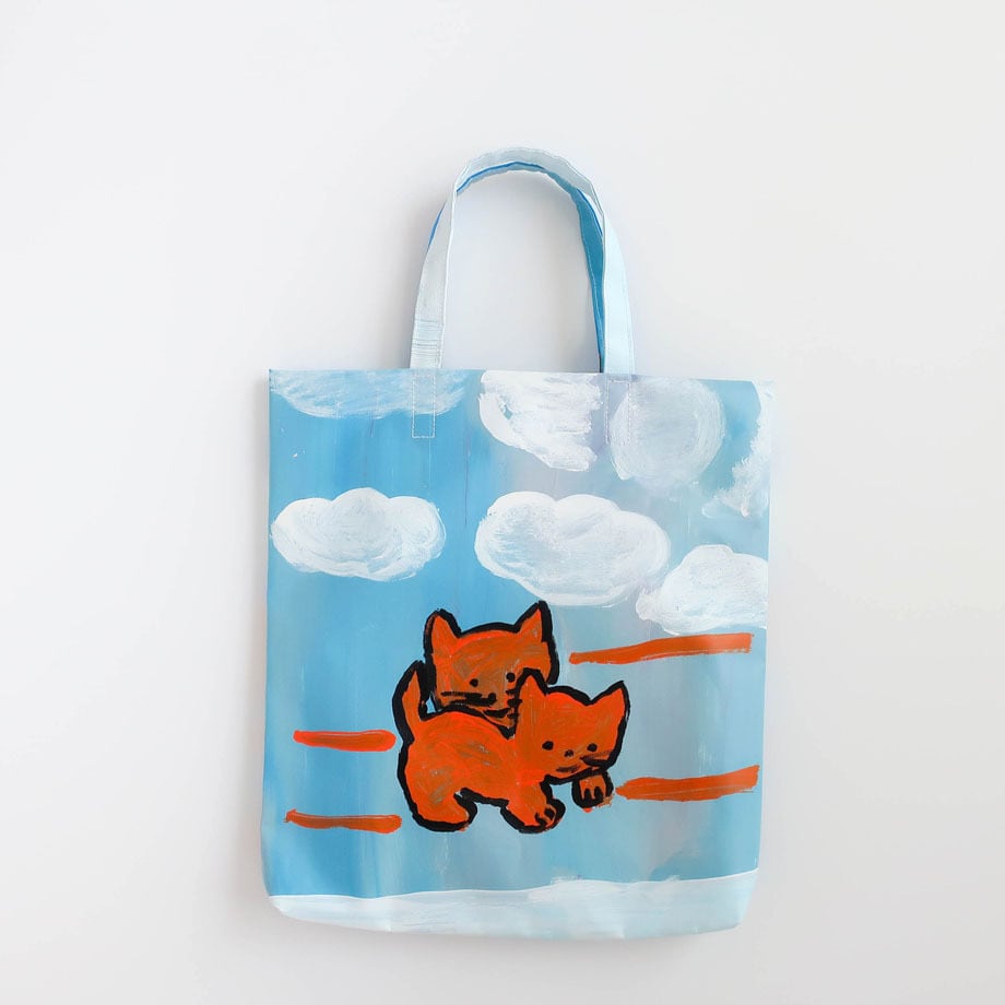 テントの商品をつくり始めた頃、仲間(利用者さん)によるペインティングの仕事を水曜日に行っていたため「水ようびのトート」。(今は月曜日と水曜日に行っています)