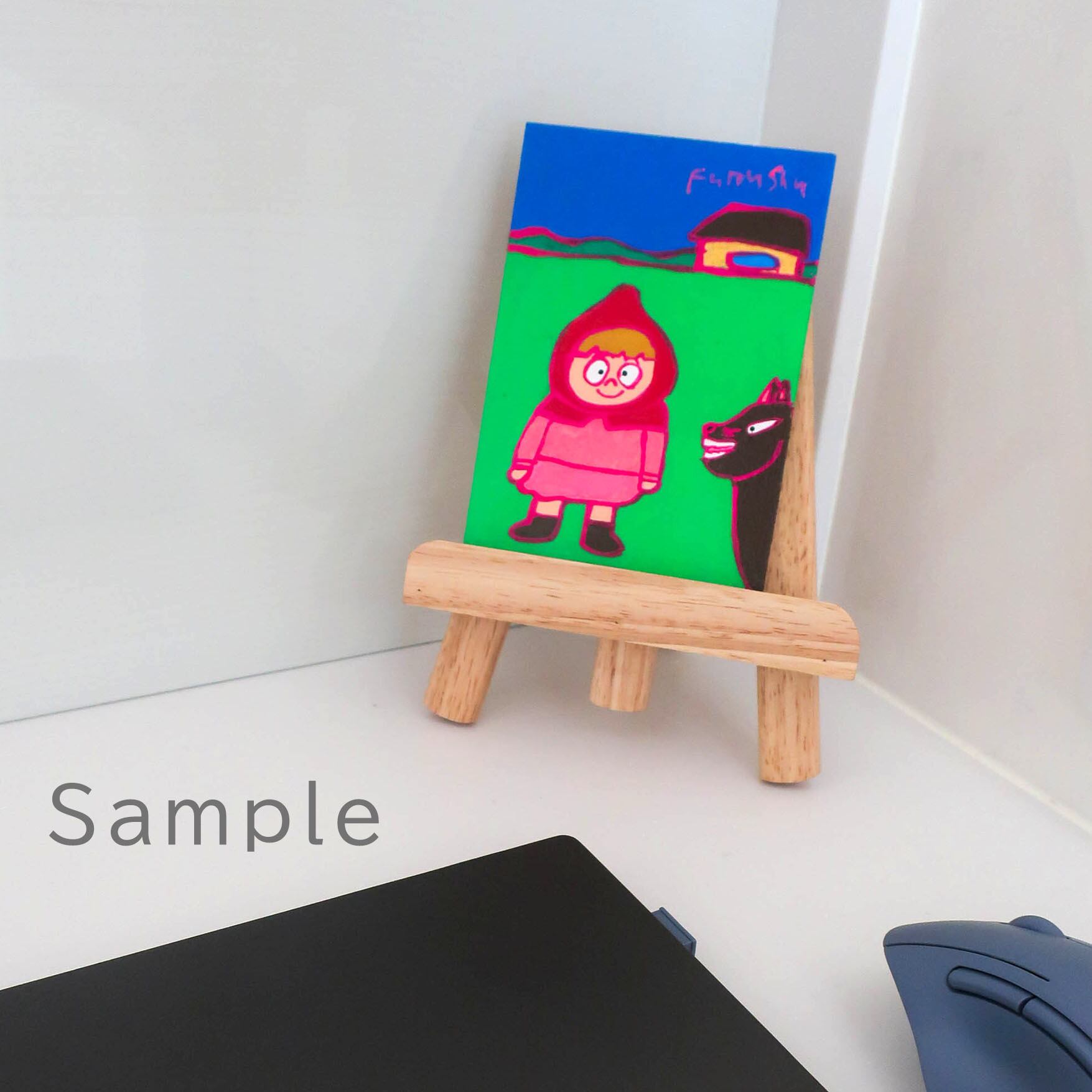 ねこや犬などの動物をよく描かれる“ぽっちゃん”こと、上村福銖(うえむら ふくしゅ)さん。今回は童話を描きました!なんと、見本なしで描かれたようです。どの作品も、作品を代表する一場面。どこかなつかしさや、改めて観てみようかな、なんて思わせてくれる上村さんの作品です。温かみのある木に描かれており、原画なのも嬉しいポイントです。切手を貼れば、郵便として送ることも可能です。大切な人への贈り物にもピッタリですね。