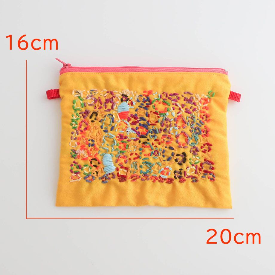 「みっちゃん」こと岡本 美乃里(おかもと みのり)さんの刺繍ポーチです。鮮やかな糸で、一つ一つ丁寧に縫い込まれたこのポーチは、手に取るたびにホッとしたり、一呼吸おける、そんな商品。ぽんぽんのムードメーカーでもある、優しくて笑顔の素敵なみっちゃんのお人柄が詰まったこのポーチは、使い勝手のいいサイズ感なのも嬉しいポイントです。