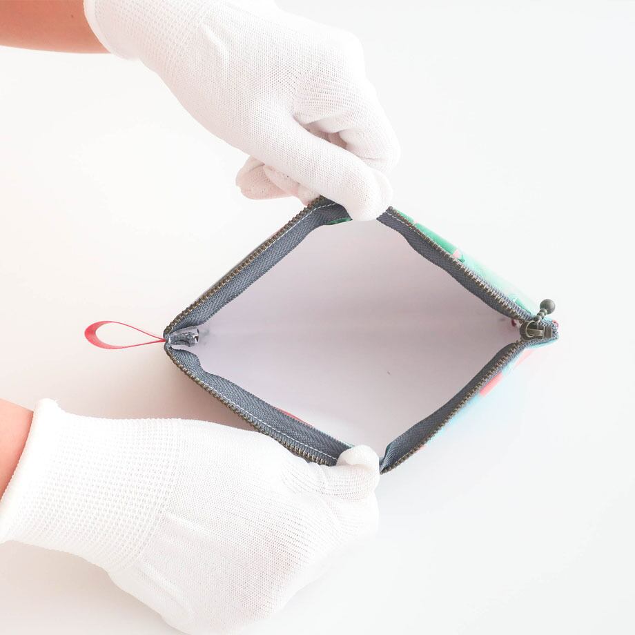 もみじ作業所の一つのグループの活動から生まれた廃材のテント生地を利用したテント商品。時にただ塗っているだけにも見える色合いにも、彼らそれぞれの思いや屈託が表現されたものに感じられるから不思議。そうやって描き、塗られた二つとないテント生地は職員の手で裁断し、一部を除いて職員が縫製し、カバンやポーチなどカラフルで独特なテント商品へと生まれ変わります。